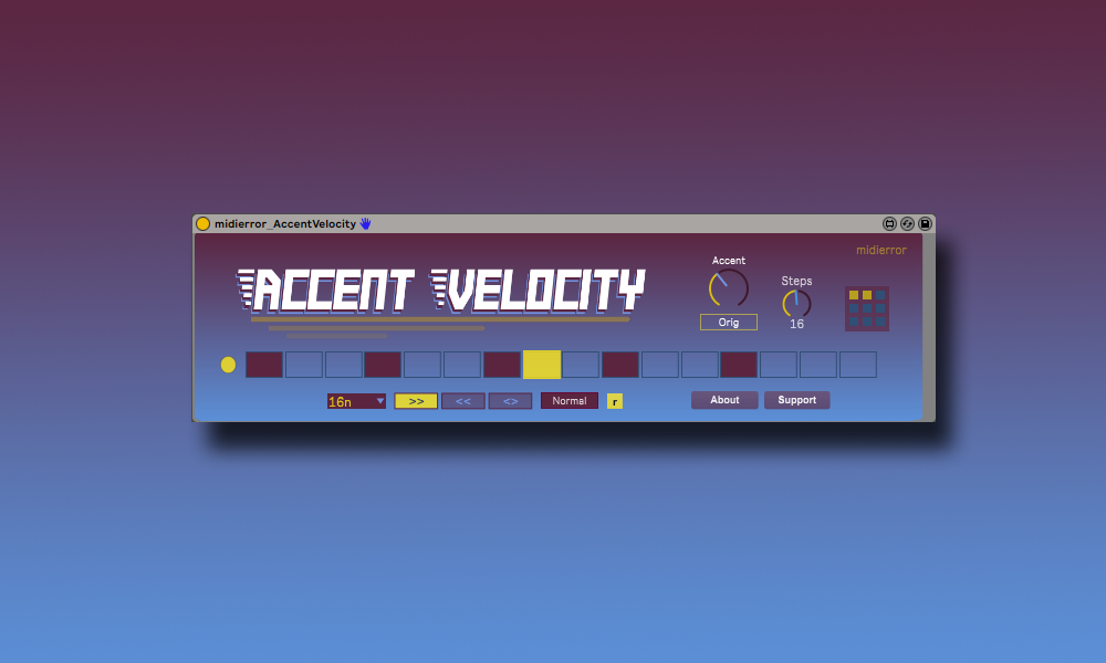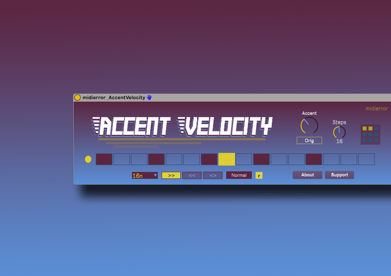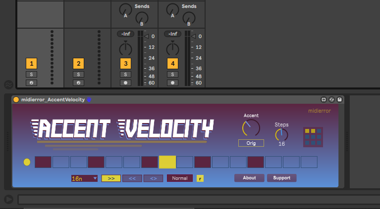 Accent Velocity is a step sequencer which boosts the velocity of incoming notes on steps you choose to accent - inspired by hardware drum machines. This device will take incoming drum patterns and re-invent their flavour and flow.