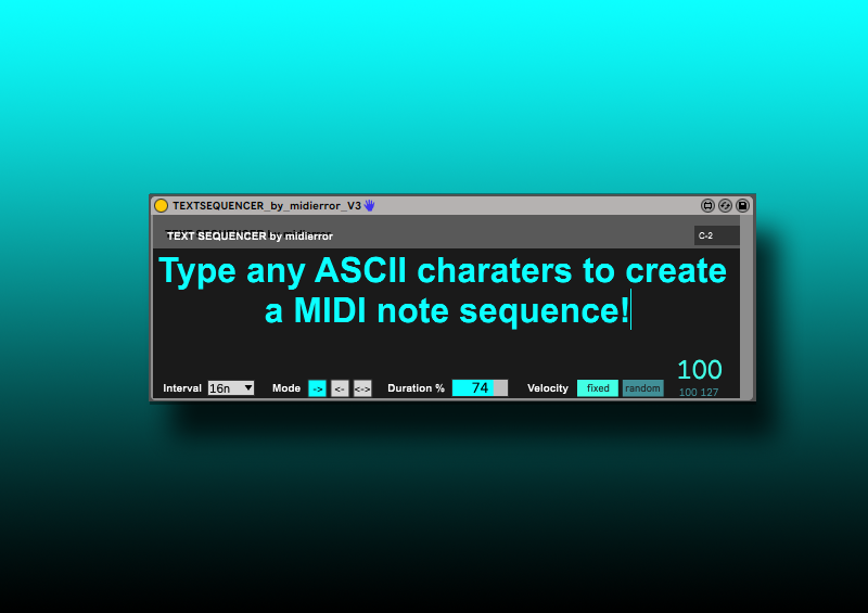 Text To MIDI Sequencer [Max4Live] - ASCII characters to notes!